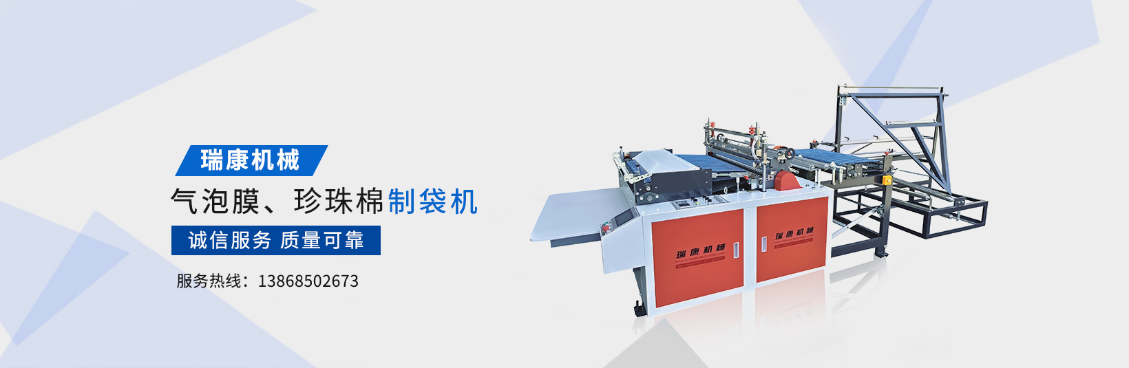 溫州瑞康機械有限公司(www_wzruikang_com.dreamland9.cn)主要生產氣泡膜機,快遞袋制袋機,包裝機,制袋機等設備。瑞康機械是國內生產塑料軟包裝系列機械設備的專業廠家之一。產品質量可靠、誠信服務,深受用戶好評,市場占有率節節攀升。